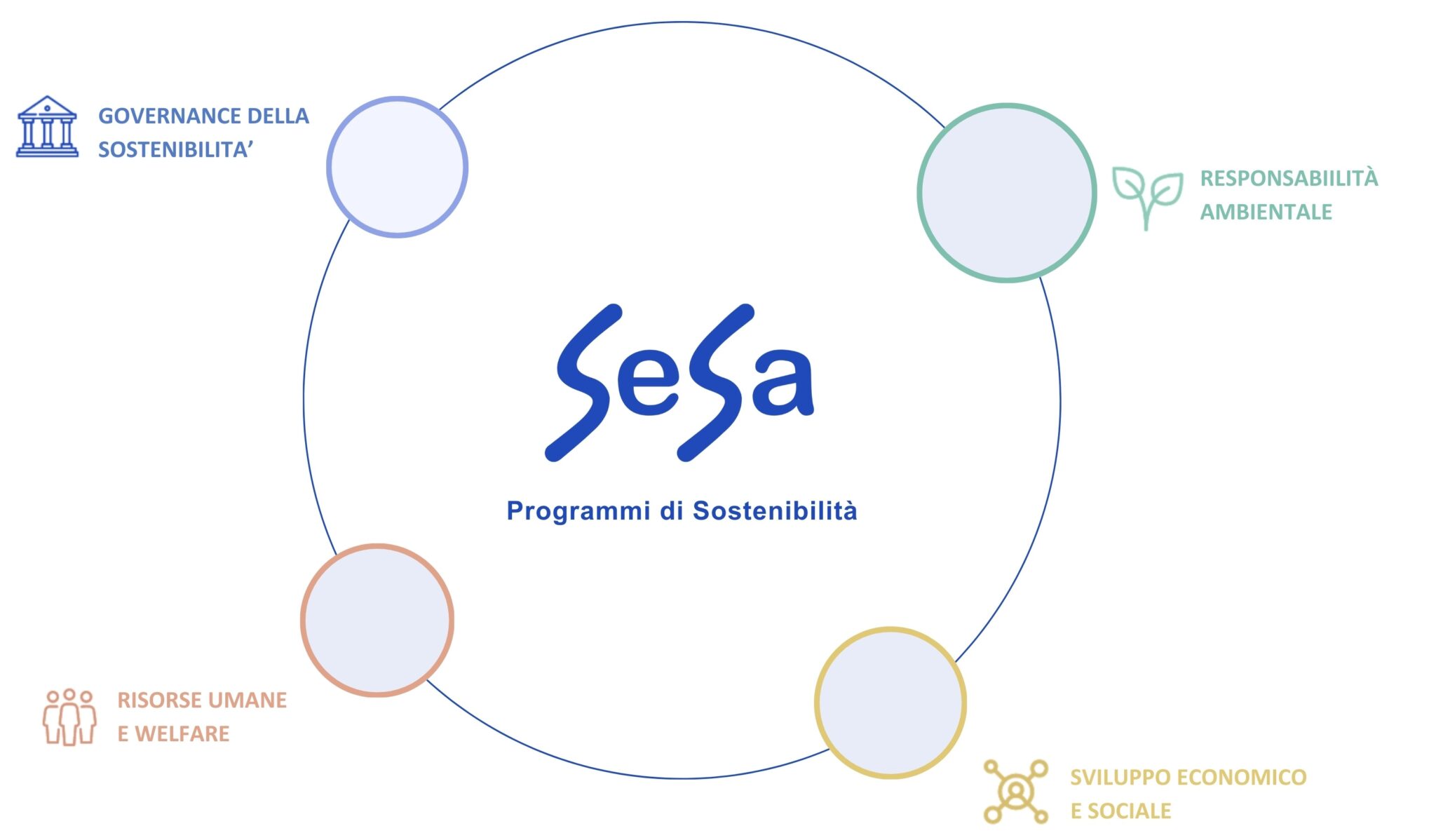 Nel corso degli ultimi anni abbiamo consolidato un solido framework ESG, strutturato in quattro direttrici fondamentali: Governance della sostenibilità, Responsabilità ambientale, Sviluppo Sociale e Risorse umane e Welfare.